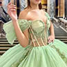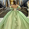 El intrincado aplique floral de cuentas adornan el corpiño y la falda, aportando una belleza delicada y atemporal al vestido. Las cuentas capturan la luz, añadiendo un brillo sutil que realza su encanto general. La espalda con cordones proporciona un ajuste perfecto y personalizable, permitiéndote sentirse segura y cómoda a la vez que luces deslumbrante. Este vestido de quinceañera verde salvia es la opción ideal para una chica que quiere sentirse como una princesa y celebrar con estilo, haciendo que cada momento de su día sea inolvidable.